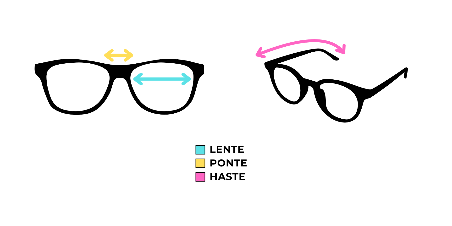 Caso o seu óculos não tenho os números, você pode medir manualmente com uma régua ou com uma fita métrica. O que mais impacta no visual é o primeiro número (largura da lente).