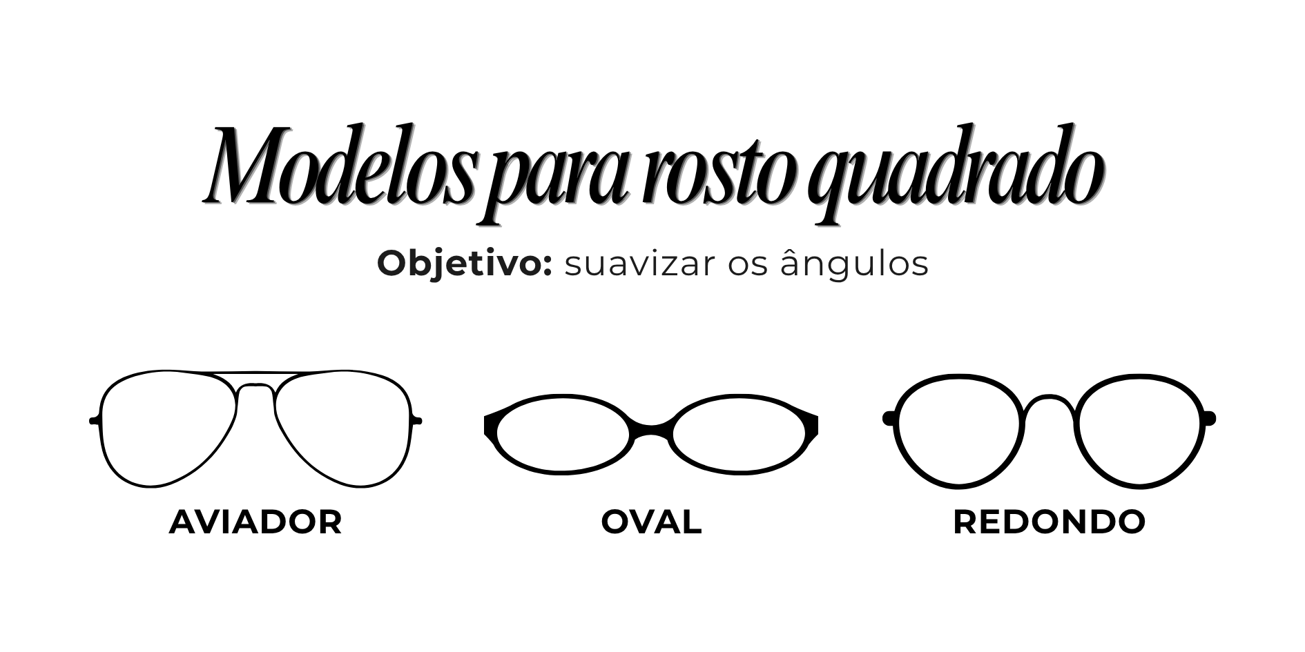Indicação KAIZARA para rosto quadrado: Óculos Duna, Raquel, Serena, Marina, Maya, Aurora e Jade (clique sobre os nomes para conferir os modelos).
